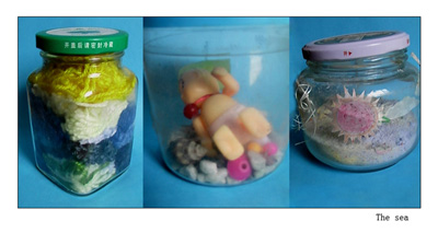 Layout students to participate in a production on the sea issues, in making a bottle, these children have not seen the sea, their understanding of the sea is based on the teacher, family, television media, and other indirect access to knowledge concerning the sea. The sea is a carrier, acceptance, delivery, inclusive, is about the origin of life. Bottle is also a carrier, acceptance and tolerance of a container.