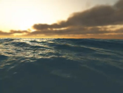 image itself is uncovered as illusory: a complete simulacrum. The viewer, seduced initially by the 'philosophical' experience of the sea belatedly realizes that it is an audio-visual fabric woven by the virtual shuttles of 3D animation. The sea is completely unreal, drawing none of its charms and dangers
